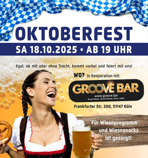 Die wohl schönste Halloween Party in Porz. Mit den Hits der 80er und 90er von der phantastischen Liveband SUPAGROOVE - und danach sorgt ein DJ für ausgelassene Stimmung. Das alles in der aufwendig dekorierten Groove Bar -