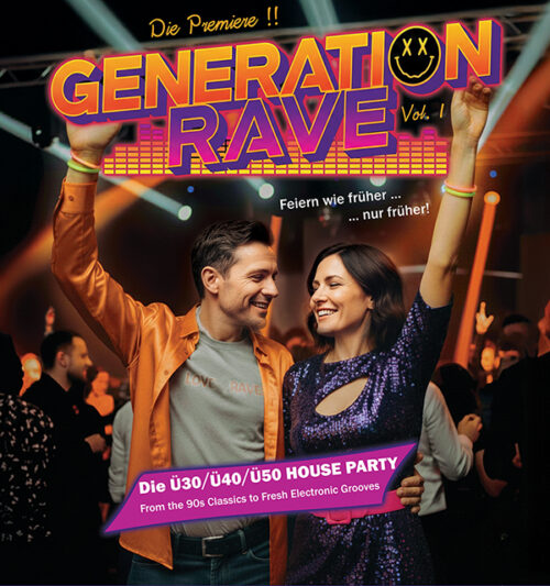 Wir laden zur GENERATION RAVE – der exklusiven Ü30 / Ü40 / Ü50 House Party für alle, die noch wissen, wie man richtig feiert. -